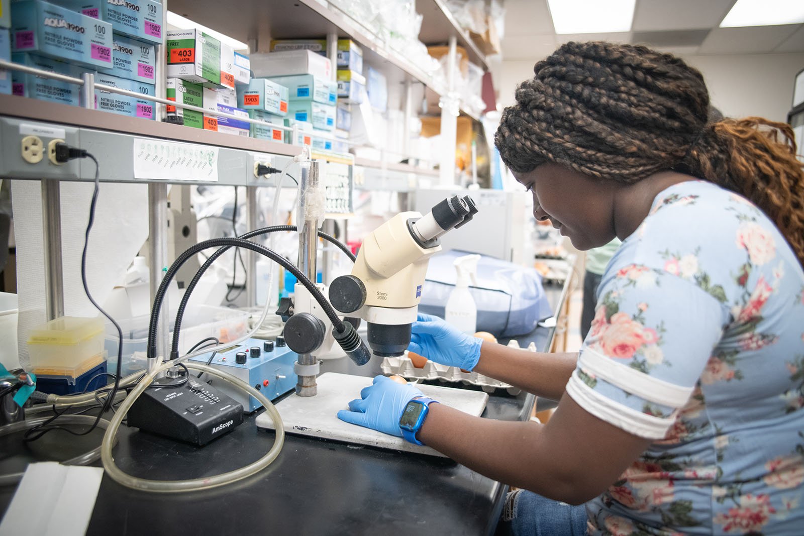 Taylor Simonian, a junior from the University of Southern California, participated in the Amgen Scholars Program under the mentorship of Marianne Bronner, the Edward B. Lewis Professor of Biology and director of the Beckman Institute. "The entire field of developmental biology and embryology using the chick system to study craniofacial development was completely novel to me prior to this summer," Simonian says. "I was given preparatory materials to introduce the new lab techniques I would be learning. From the beginning, I had hands-on opportunities to perform these techniques. The technology is astounding." Simonian hopes her work on embryonic development of the mandible may one day prove useful to the field of regenerative medicine.